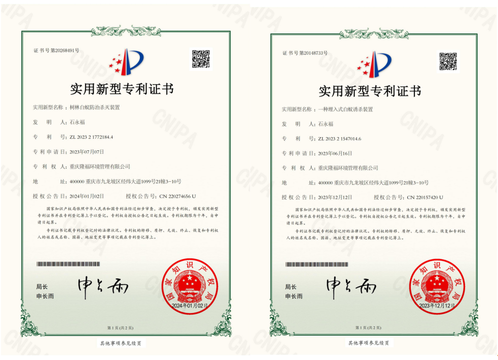 我司是全國白蟻防治標(biāo)準(zhǔn)化建設(shè)和實施的試點單位、是率先獲得“全國白蟻防治(高級)專業(yè)服務(wù)能力單位”、全國白蟻防治中心委員單位、堤壩白蟻防治標(biāo)準(zhǔn)流程化施工的創(chuàng)始單位、川渝地區(qū)首家開展白蟻防治技術(shù)培訓(xùn)的教學(xué)單位、重慶市白蟻專委會理事單位、有害生物防治A級單位。